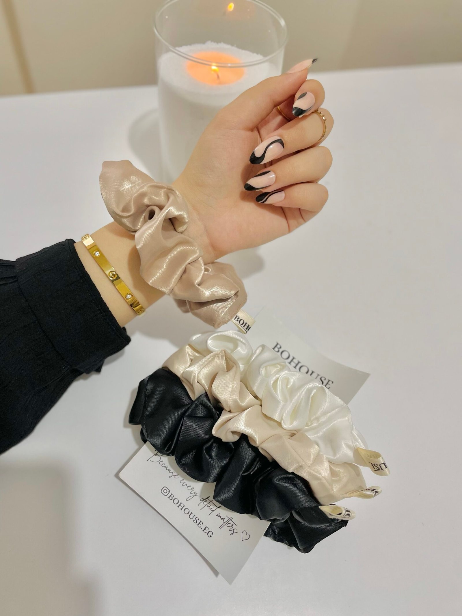 اسكرانشي ساتان ناعم لحماية الشعر ومنع الهيشان والتقصف، مثالي لكل أنواع الشعر. ✨