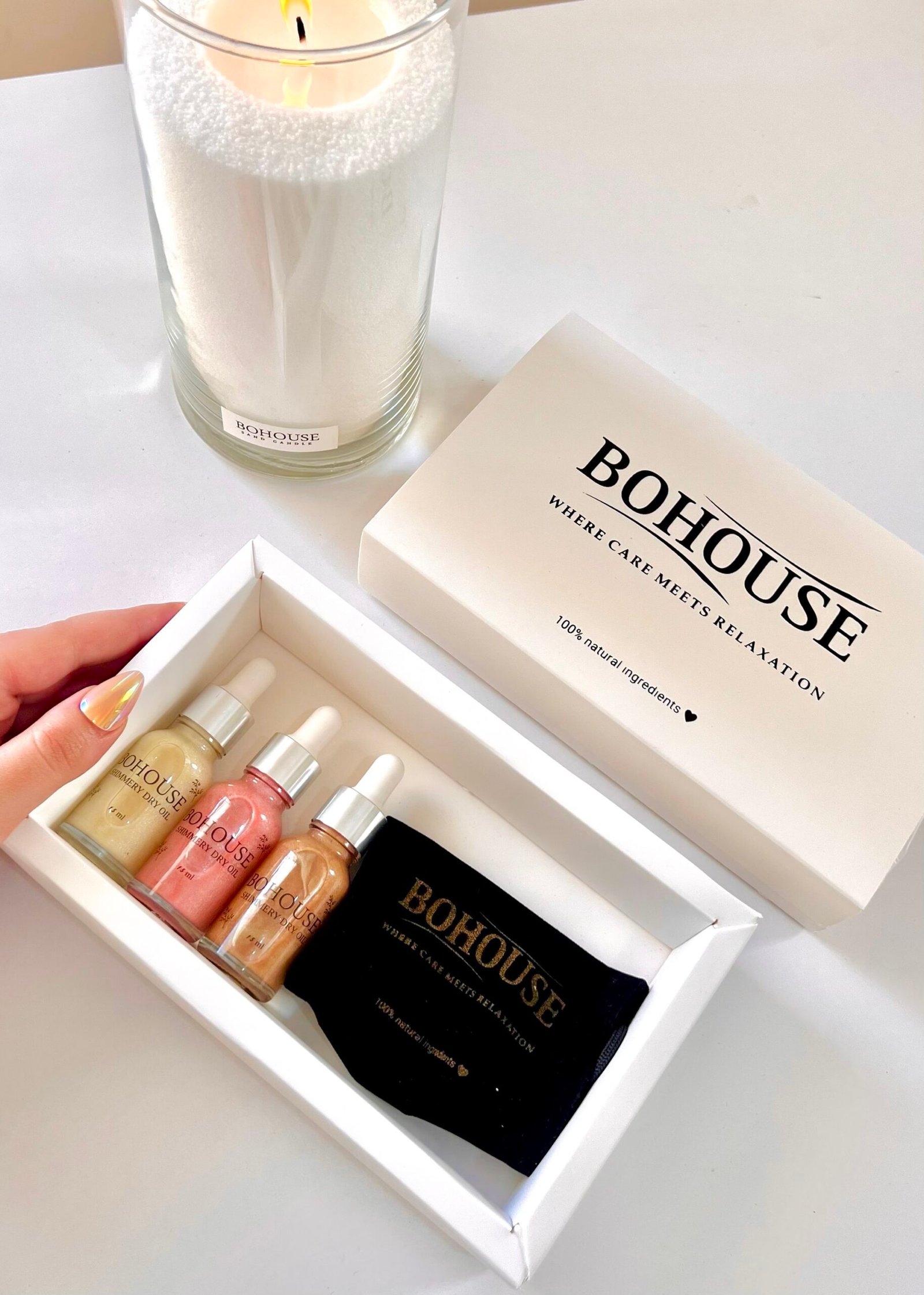 3 Droppers 15ml &(black velvet bag) ✨ البوكس يضم 3 شيمر دراى اويل بثلاثة ألوان وثلاث Ø±ÙˆØ§Ø¦Ø Ù…Ù…ÙŠØ²Ø©ØŒ ÙŠÙ…Ù†Ø Ø¨Ø´Ø±ØªÙƒ ترطيبًا ØØ±ÙŠØ±ÙŠÙ‹Ø§ ولمعانًا ناعمًا. ✨